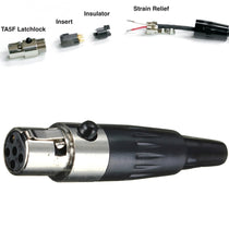 This is a replacement TA4F mini XLR female connector plug commonly used for lavaliere and ear-hook microphones. Audio and power connection on headset microphones, wireless body-pack transmitters & industrial R&D production. Suitable for Branded products for example Shure microphones that have TA4F TQG connector.